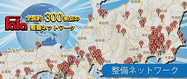 当社は輸入車における整備ネットワーク全国300拠点の正会員として、お車を購入したお客様が遠方でお困りの場合、FAIAが地域や車両情報をもとにお近くの整備ネットワーク加盟店を紹介させていただきます。