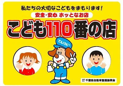 社)千葉県自動車整備振興会も社会貢献の一環とし、事業専門委員会にて検討を行い「こども110番の店」としてこどもたちを事件、事故から守るためと地域の安全を守るために緊急避難場所を自動車整備業場に設置する活動を実施しています。