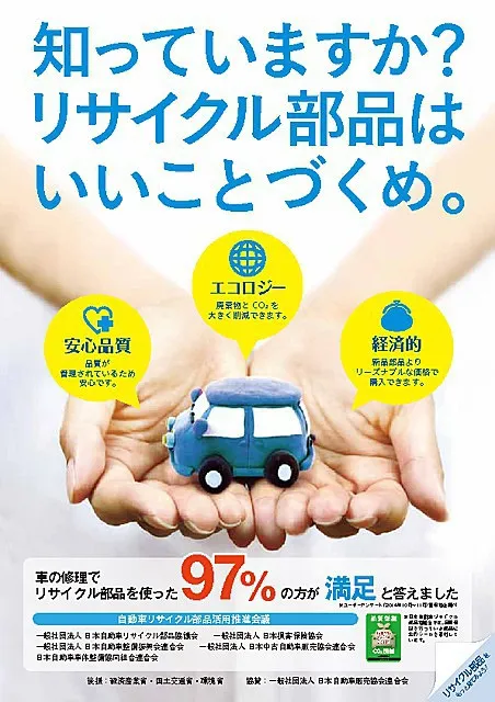 損害保険協会が車の修理でリサイクル部品を使った経験のあるお客様にアンケートを実施した結果によると97%の方が満足と回答されたそうです。