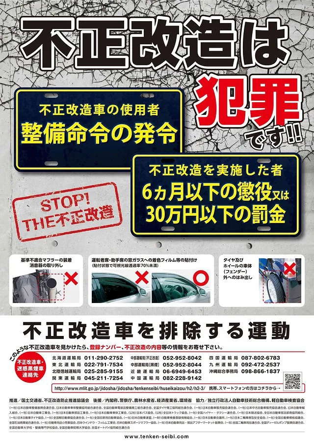不正改造車への修理やオーディオの取付はもちろんオイル交換など一切を行う事はできません。