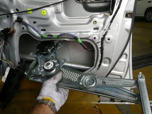 早速レギュレーター交換しましたが、ワイヤーを巻き上げるモーター(ウインドレギュレーターモーター)も力が弱まっていたため一緒に交換させて頂きました。