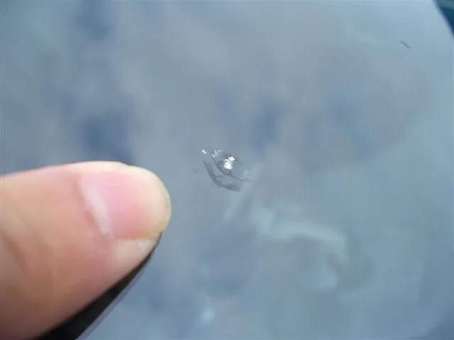 幸いにしてキズは小指の爪程度に収まる大きさでしたので特殊溶剤によるガラスリペアで済みました。